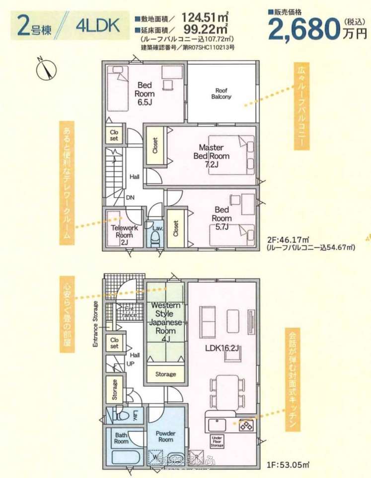 | 間取り | 4LDK ( 洋5.7 洋6.5 洋7.2 和4 LDK16.2 ※テレワークルーム2帖) | ||