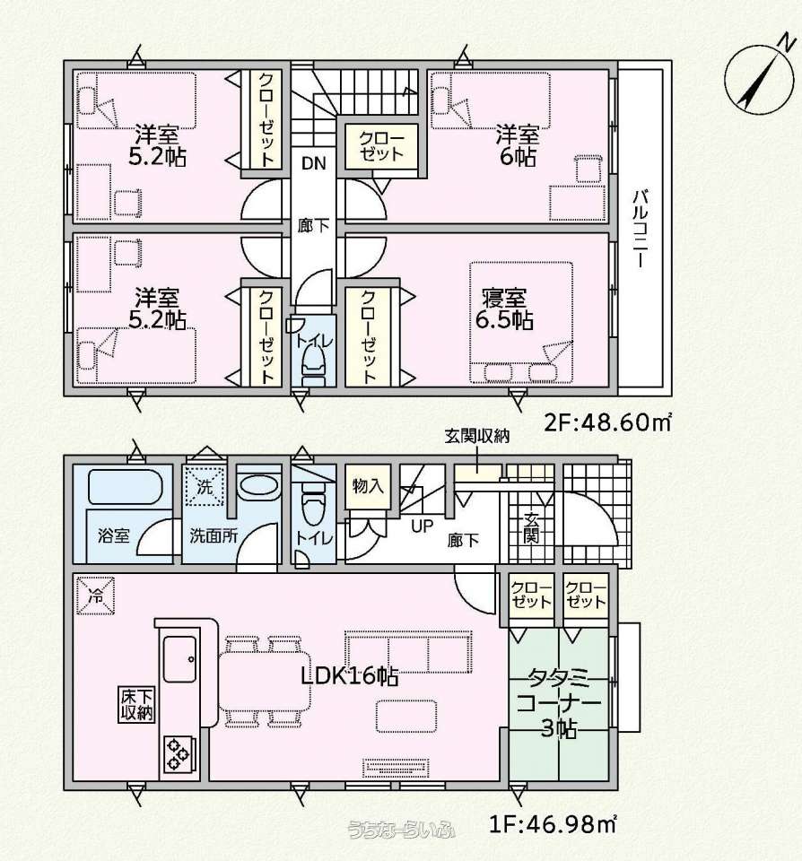 間取り | 4LDK ( 洋5.2 洋5.2 洋6 洋6.5 LDK16 ※タタミコーナー3畳あり) | ||