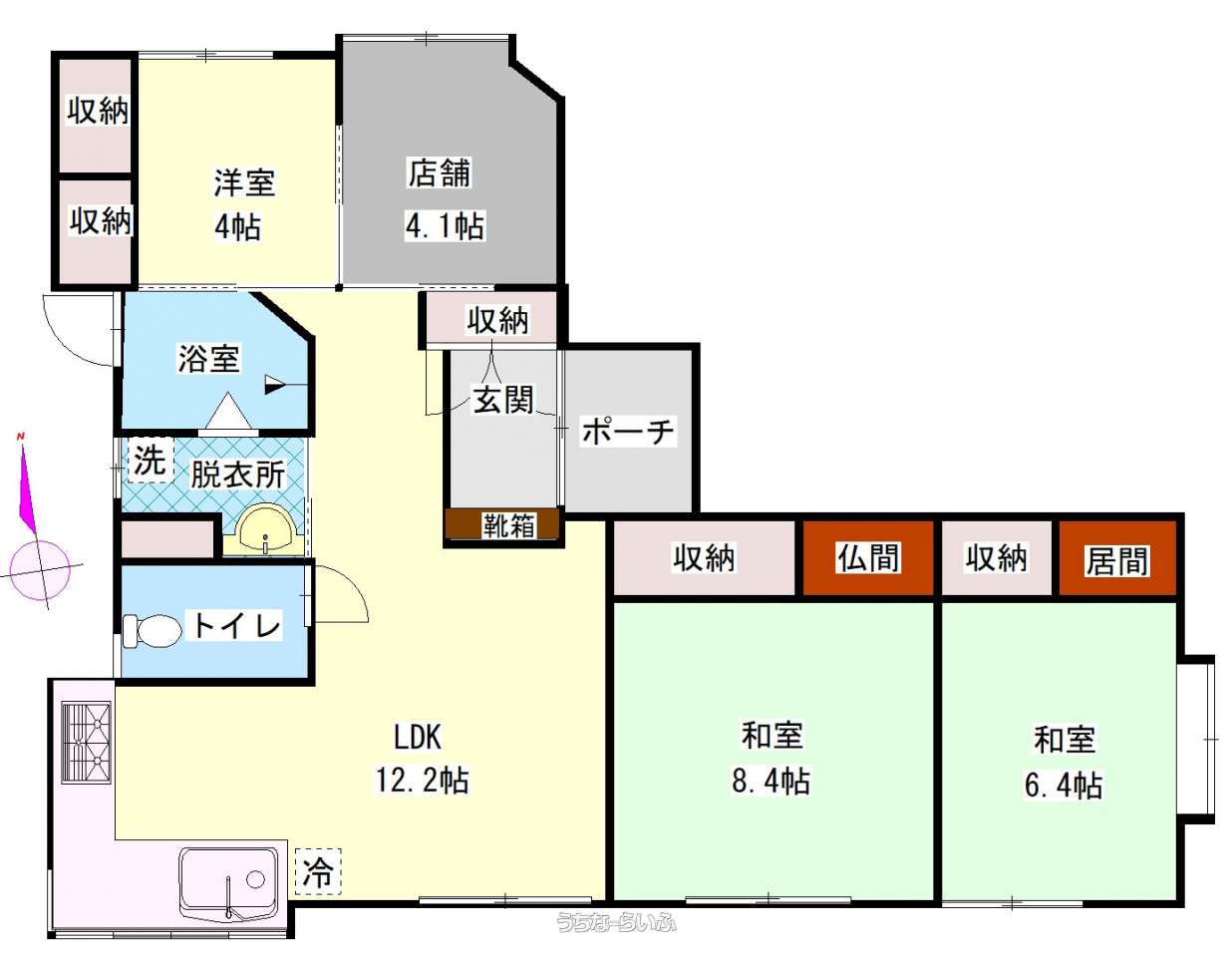 | 間取り | 4LDK ( 洋4 洋4.1 和8 和6 LDK12.2) | ||
