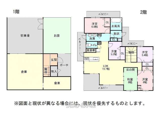 | 間取り | 5LDK ( 洋6.8 洋6 洋5.4 洋5.2 和6 LDK20 ※倉庫あり) | ||