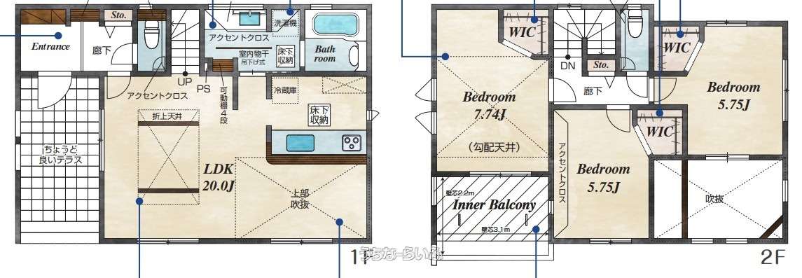 | 間取り | 3LDK ( 洋7.7 洋5.7 洋5.7 LDK20) | ||