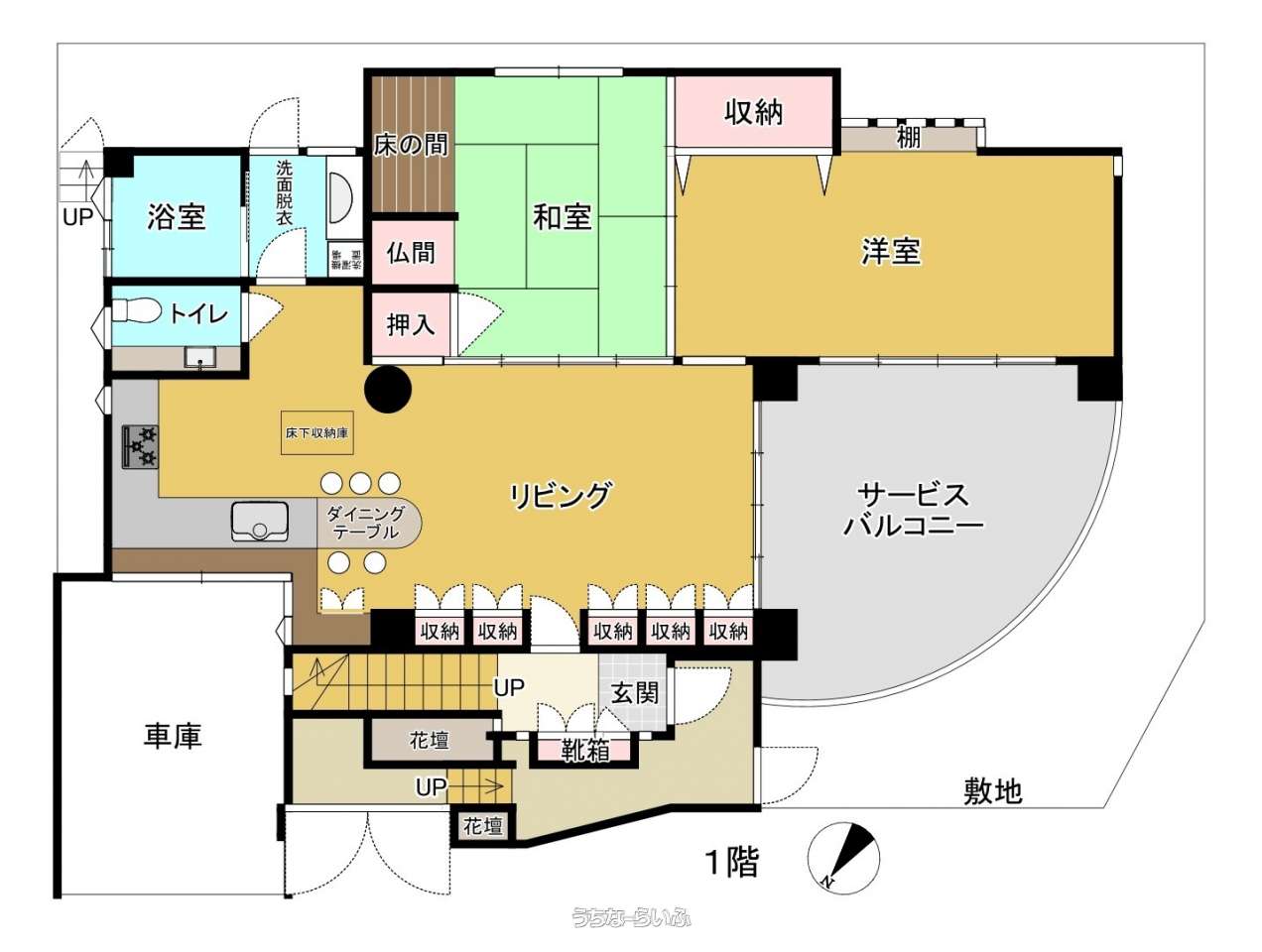 | 収納 | ウォークインクローゼット 、 シューズボックス 、 床下収納 |