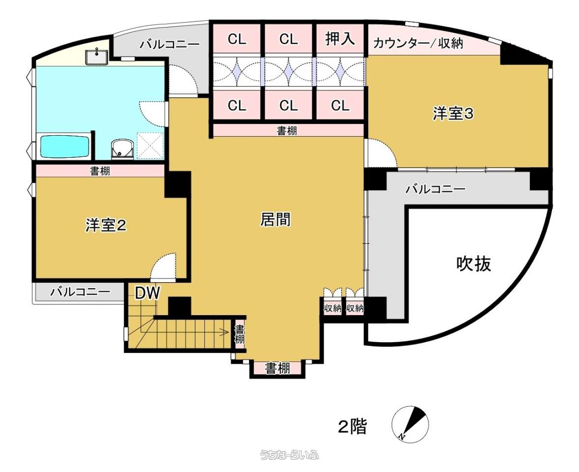 | バス・トイレ | バス/トイレ別 、 浴槽 、 浴室1坪以上 、 トイレ2ヶ所 |