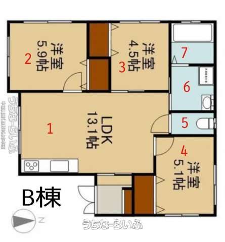 | 間取り | 3LDK ( 洋5.1 洋4.5 洋5.9 LDK13.1) | ||