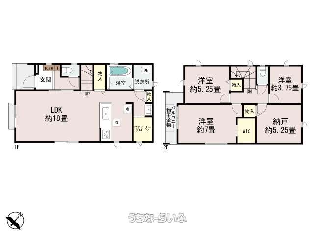 | 間取り | 3SLDK ( 洋3.7 洋5.2 洋7 SLDK18 ※洋3.7×洋5.25×納戸5.25×洋7×LDK18) | ||