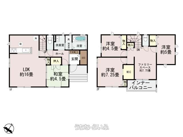 | 間取り | 4LDK ( 洋4.5 洋5 洋7.2 和4.5 LDK16 ※ファミリースペース7.75畳) | ||