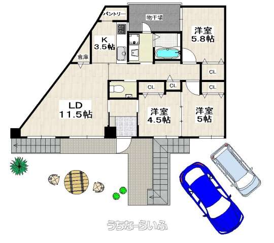| 間取り | 3LDK ( 洋5.8 洋5 洋4 LDK15) | ||