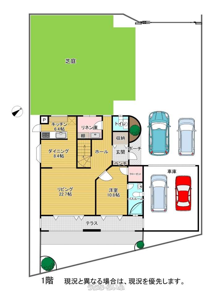 | 駐車場 | 4台 ※多数駐車可能 シャッター付ガレージ駐車2台可 | 地目 | 宅地 |