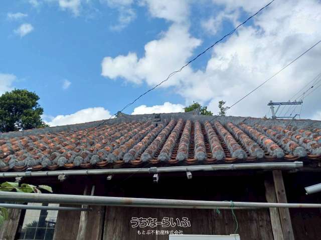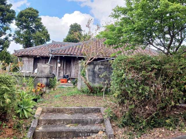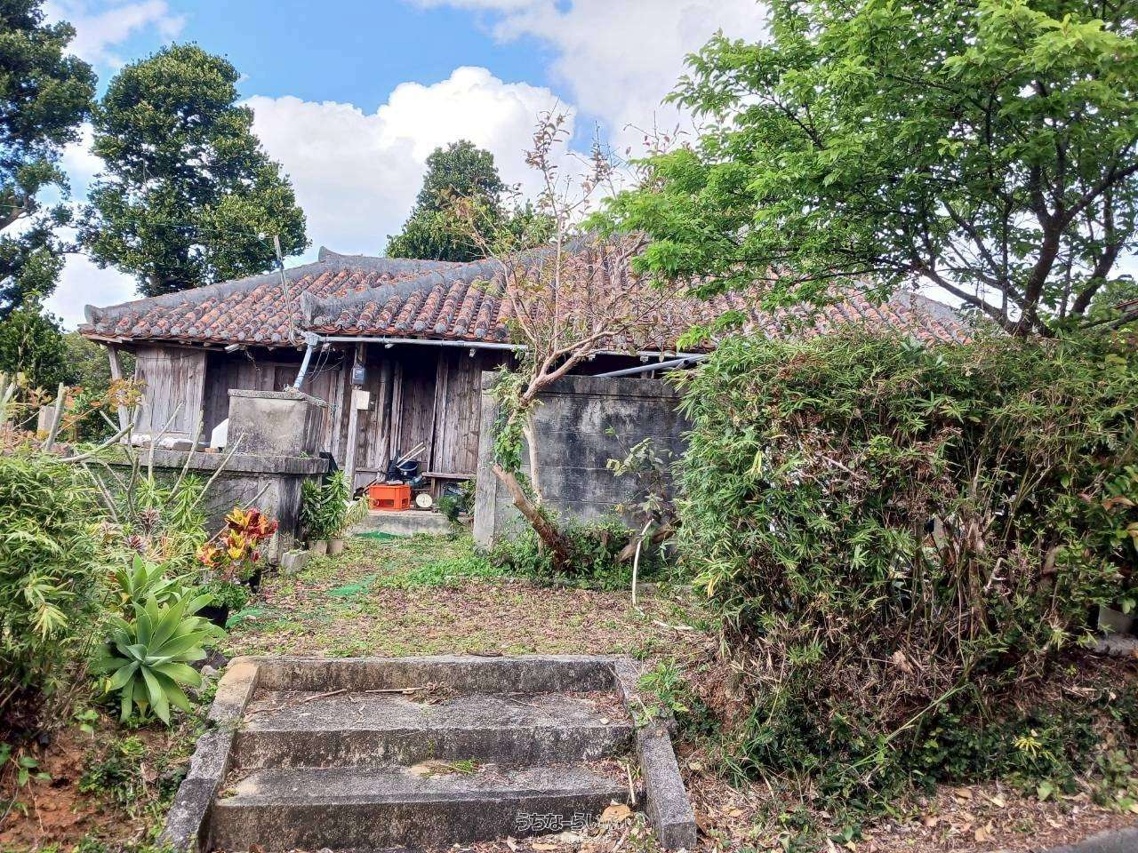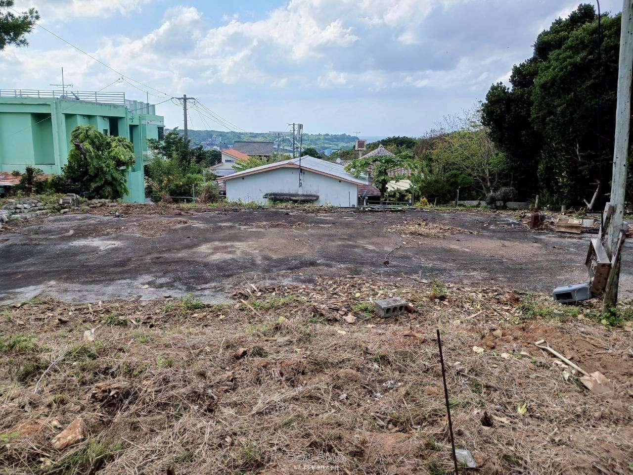 【売家】本部町 ,土地、古民家赤瓦屋根、 庭から海と瀬底島が見えます。美ら海水族館車で15分、近くのビーチ迄車5分スーパーコンビニ車で5分