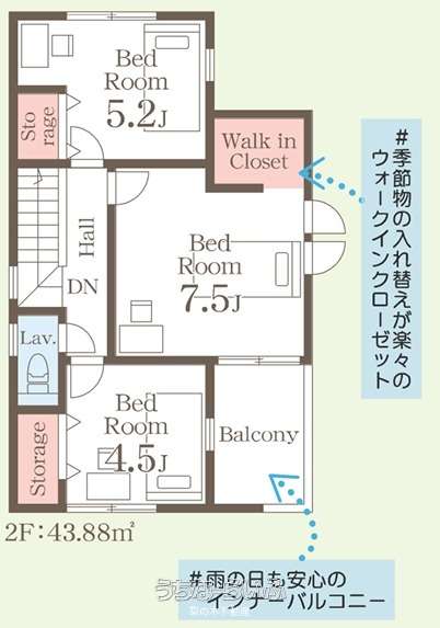| 間取り | 3LDK ( 洋7.5 洋5.2 洋4.5 LDK17) | ||