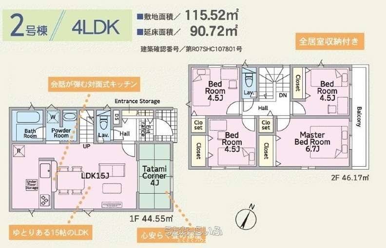 | 間取り | 4LDK ( 洋6.7 洋4.5 洋4.5 洋4.5 LDK15) | ||