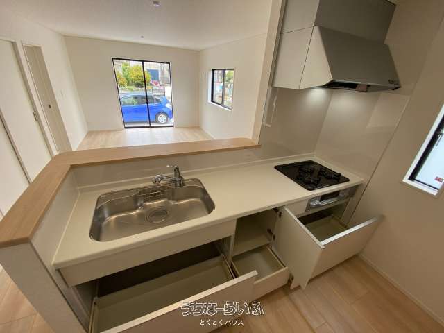 | キッチン | ガスコンロ 、 コンロ三口以上 、 対面式キッチン(カウンターキッチン) 、 システムキッチン |