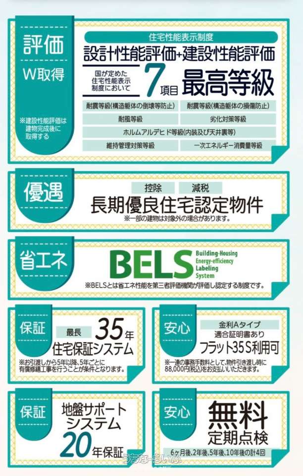 | 評価・証明書 | 設計住宅性能評価書 、 建設住宅性能評価書(新築時) |