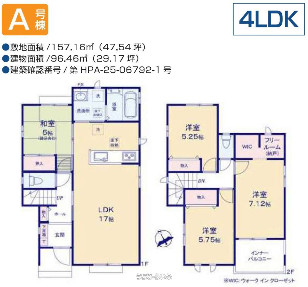 | 間取り | 4LDK ( 洋7.1 洋5.7 洋5.2 和5 LDK17 ※全居室収納あり、インナーバルコニー) | ||
