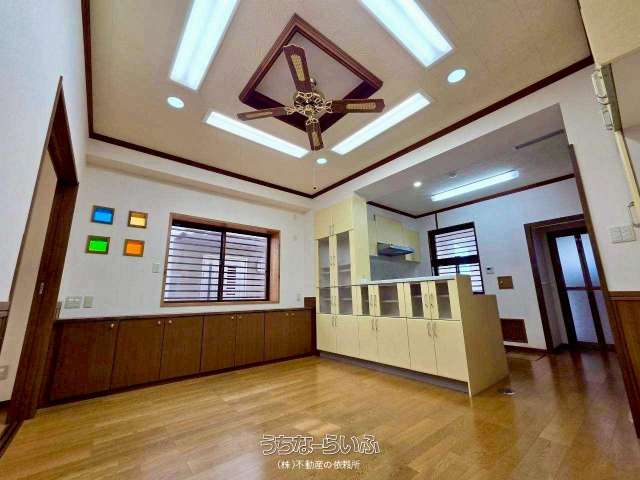 7LDKのゆとりを、新都心で。暑さと湿気に負けない独自システム!広さが叶う、大家族の理想郷。㈱新洋の「クール住宅」独自のエアサイクル通気工法。暑さと湿気に強い快適な家。こだわりの詰まった邸宅。大変綺麗にお使いです♪7LDK +車庫4台!駐車場:4台(乗用車並列2台、軽自動車縦列2台)※全て乗用車の場合3台。収納豊富!二世帯や大家族様にも♪浴室はゆったり1620サイズ。住宅診断実地済。前面道路は約6m、間口は11.5mの邸宅。校区:安謝小学校徒歩5分。安岡中学校徒歩9分。新しく開店したサンエー銘苅店も徒歩10分!車で3分!