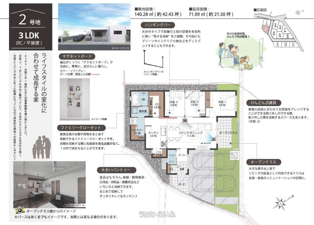 ✨モデルハウス見学できます✨【2号地/ライフスタイルに合わせて成長する家】月7万円台でZEH水準×RC造の平屋住宅がアナタのものに!小学校徒歩圏内&充実設備で快適生活🏡