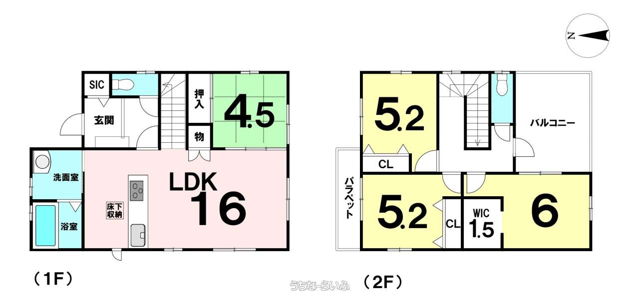 | 間取り | 4LDK ( 洋6 洋5.2 洋5.2 和4.5 LDK16) | ||