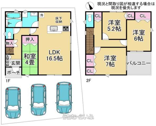 | 収納 | ウォークインクローゼット 、 シューズインクローク 、 シューズボックス 、 床下収納 、 全居室収納 |