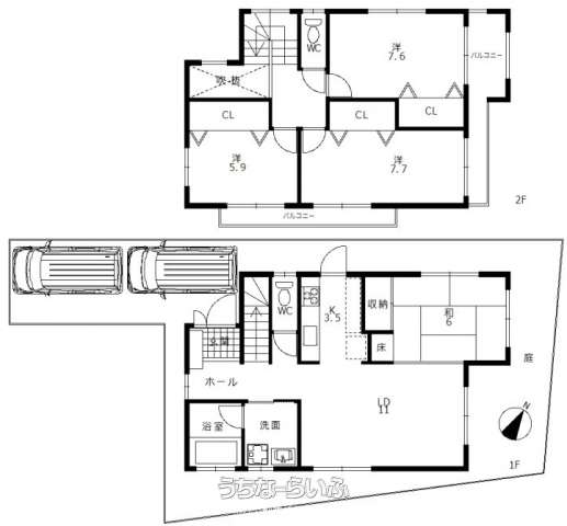 | 間取り | 4LDK ( 洋7.7 洋7.6 洋5.9 和6 LDK14.5) | ||