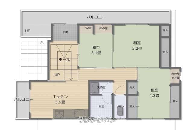 | バス・トイレ | バス/トイレ別 、 独立洗面所 、 トイレ2ヶ所 |
