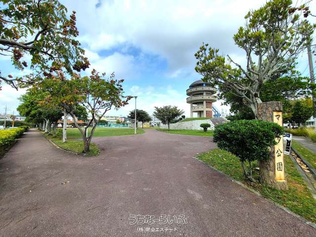 沖縄市海邦2丁目 マンタ公園近くのRC平屋住宅♪ 角地! 土地広々約64坪 並列駐車場2台 庭付き 小中学校も近くて子育ても安心♪