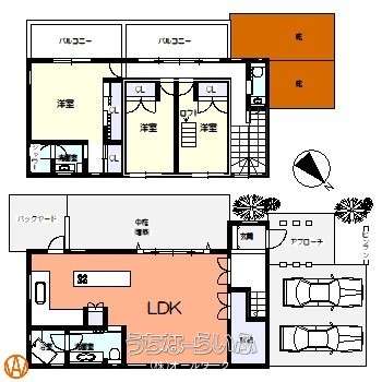 | 間取り | 3LDK ( 洋9 洋5.9 洋5.9 LDK26.2 ※2階洋室にロフト有) | ||