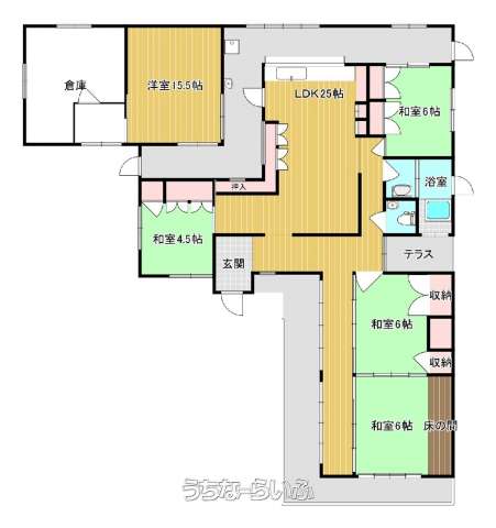 | 間取り | 5LDK ( 洋15.5 和6 和6 和6 和4.5 LDK25 ※※未登記の増築部分あり) | ||
