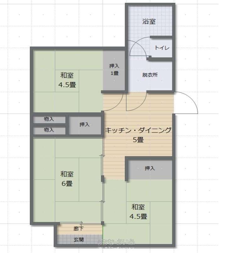 | 間取り | 3DK ( 和6 和4.5 和4.5 DK5) | ||