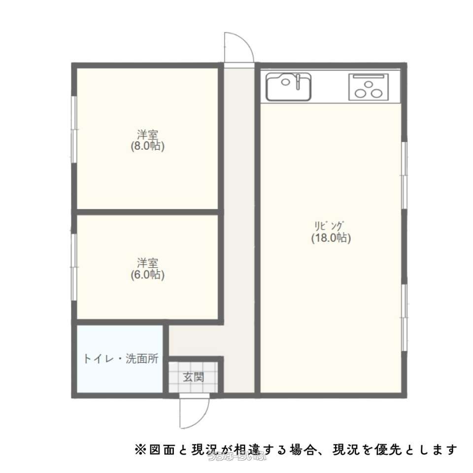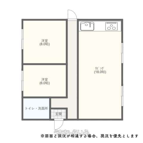 | 間取り | 2LDK ( 洋8 洋6 LDK18 ※・図面等現況が相違する場合、現況を優先とします。) | ||