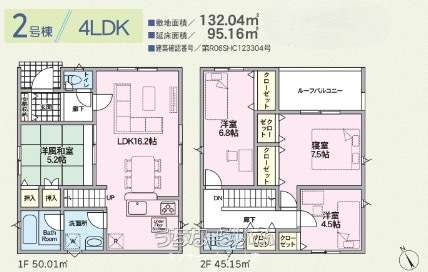 | 間取り | 4LDK ( 洋7.5 洋6.8 洋4.5 和5.2 LDK16.2 ※年間4万棟以上の実績ある施工会社が考えぬいたこだわりのプランです!) | ||