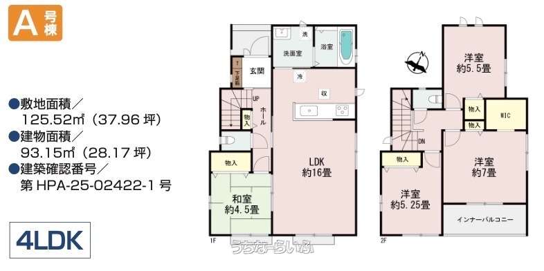 | 建物面積 | 93.15m² / 28.17坪 | 土地面積 | 125.52m² / 37.96坪 |