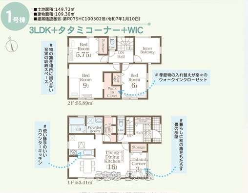 | 建物面積 | 109.3m² / 33.06坪 | 土地面積 | 149.73m² / 45.29坪 |
