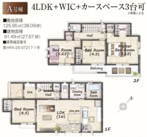 | 建物面積 | 91.49m² / 27.67坪 | 土地面積 | 125.95m² / 38.09坪 |