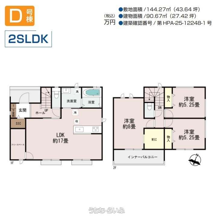 | 間取り | 2SLDK ( 洋8 洋5.2 SLDK17 ※フリースペース5.25帖!ウォークインクローゼット!年間4万棟以上の実績ある施工会社が考えぬいたこだわりのプランです!) | ||