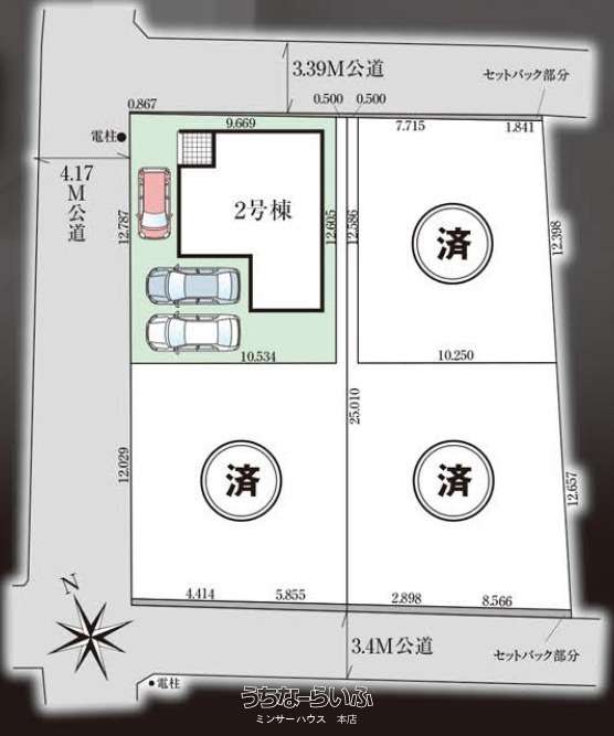 | 引き渡し | 相談 | 接道方向 / 道路幅員 | 北3.39m、 南3.25m、 西4.17m |