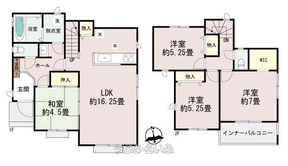 | 間取り | 4LDK ( 洋7 洋5.2 洋5.2 和4.5 LDK16.3 ※インナーバルコニー・ウォークインクローゼット) | ||