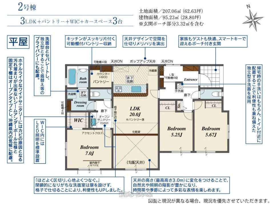 | 間取り | 3LDK ( 洋7 洋5.6 洋5.2 LDK20 ※床下収納・バルコニー・ウォークインクローゼット・パントリー) | ||
