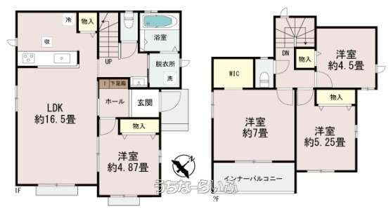 | 間取り | 4LDK ( 洋7 洋5.2 洋4.8 洋4.5 LDK16.5 ※ウォークインクローゼット・インナーバルコニー) | ||