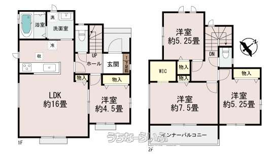 | 間取り | 4LDK ( 洋7.5 洋5.2 洋5.2 洋4.5 LDK16 ※ウォークインクローゼット・インナーバルコニー) | ||