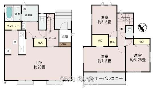 | 間取り | 3LDK ( 洋7.5 洋5.5 洋5.2 LDK20 ※ウォークインクローゼット・インナーバルコニー・パントリー) | ||