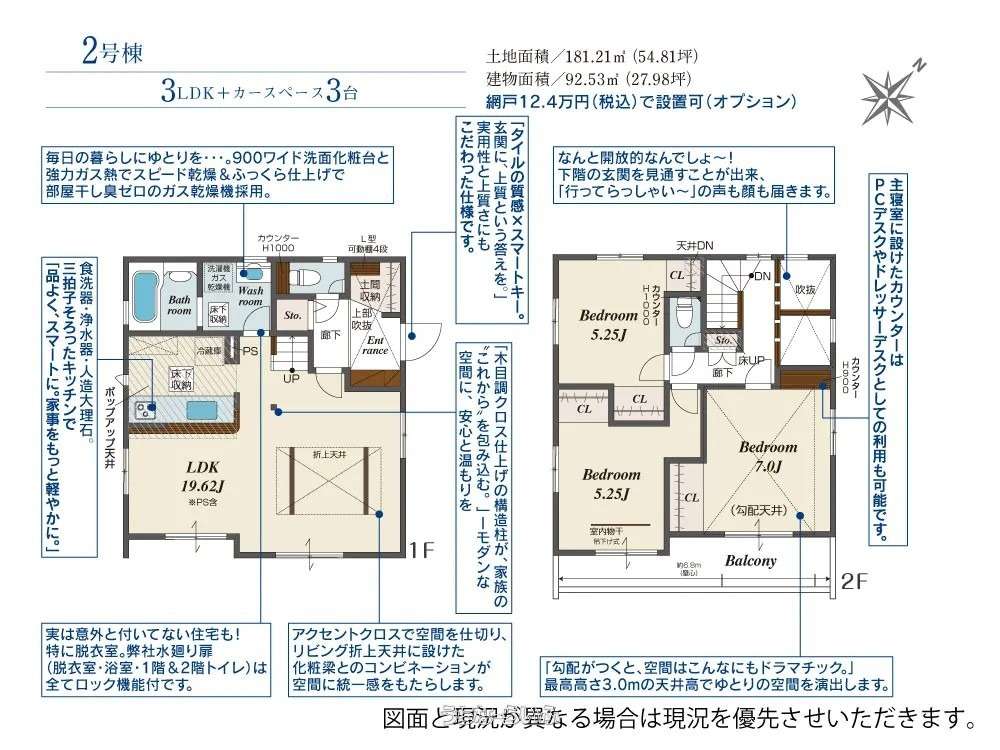 | 建物面積 | 92.53m² / 27.99坪 | 土地面積 | 181.21m² / 54.81坪 |