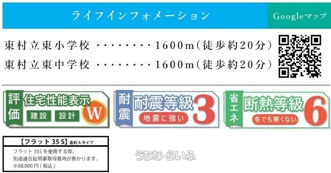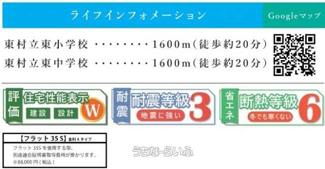 | 評価・証明書 | 建設住宅性能評価書(新築時) 、 フラット35・S適合証明書あり |