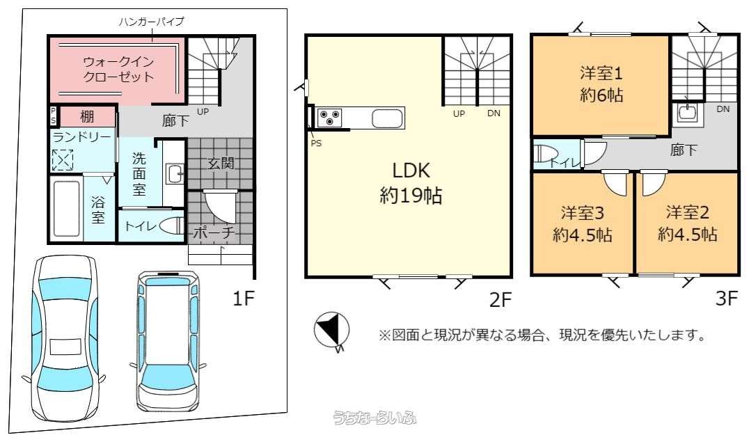 | 間取り | 3LDK ( 洋6 洋4.5 洋4.5 LDK19) | ||