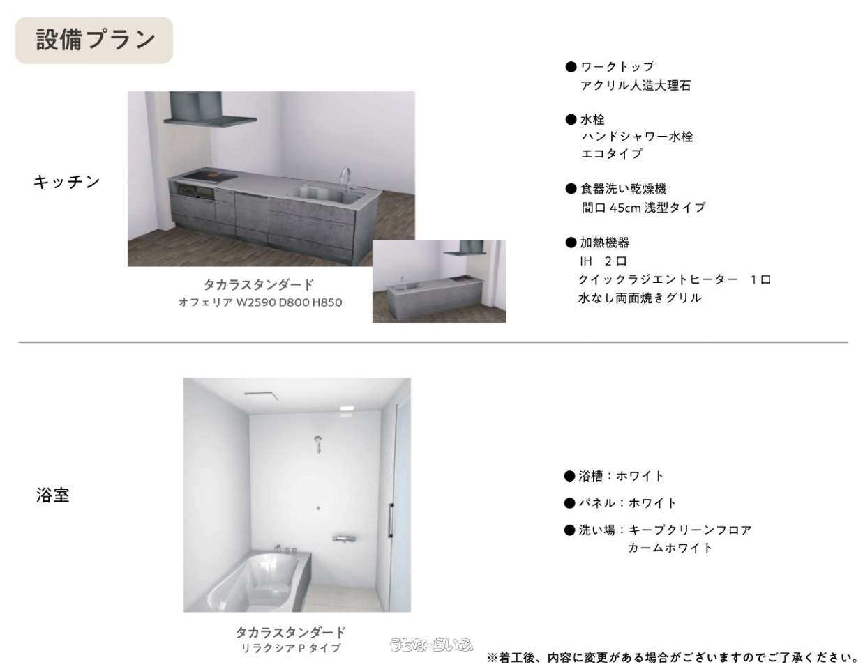 | キッチン | 省エネ給湯器 、 IHコンロ 、 コンロ三口以上 、 対面式キッチン(カウンターキッチン) 、 システムキッチン 、 食器洗乾燥機 |
