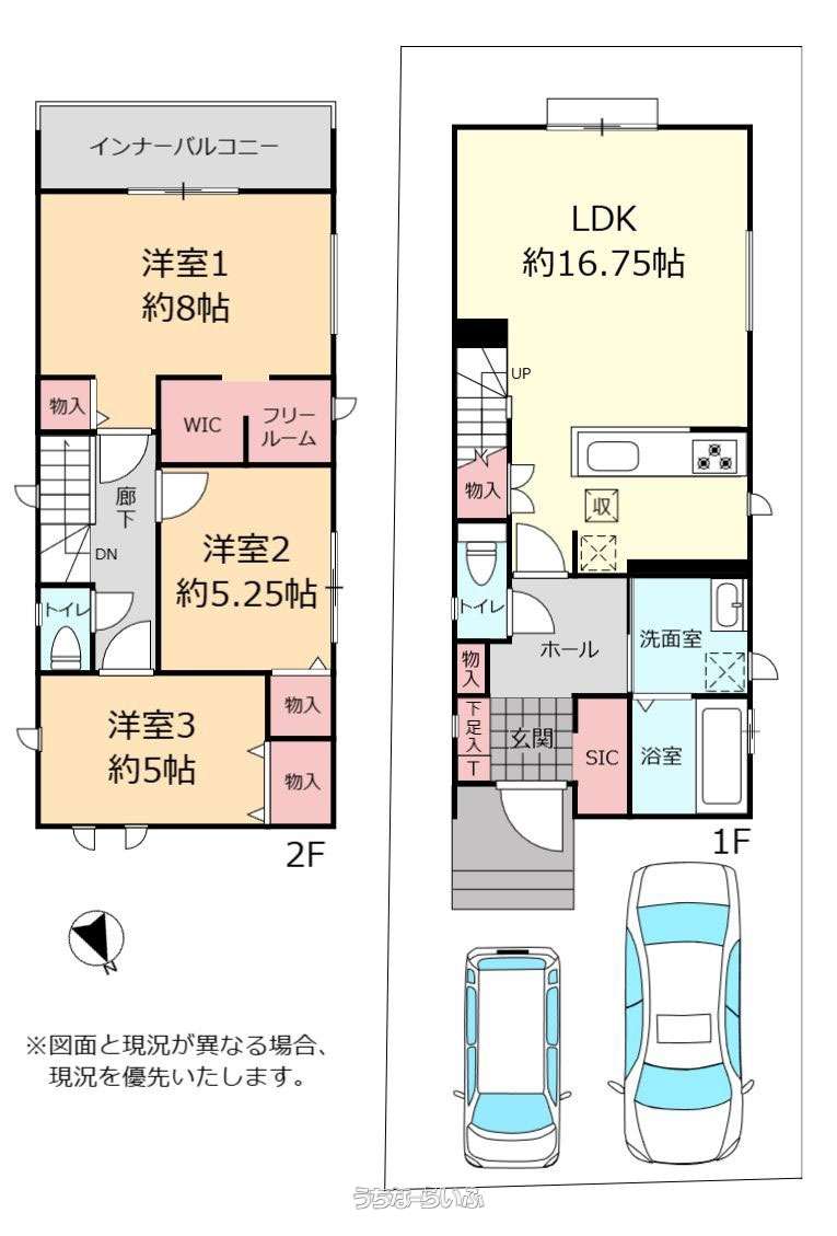 | 間取り | 3LDK ( 洋8 洋5.2 洋5 LDK16.7 ※+WIC・SIC・フリールームあり) | ||
