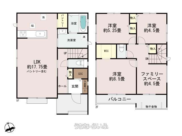 | 間取り | 3LDK ( 洋5.2 洋8.5 洋4.5 LDK17.7 ※3LDK+S、パントリー、物入れ、ウォークインクローゼット) | ||