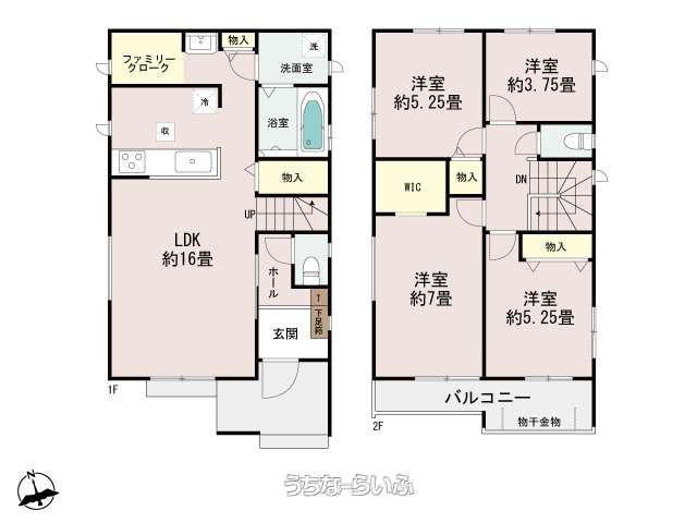 | 間取り | 4LDK ( 洋5.2 洋3.7 洋7 洋5.2 LDK16 ※ファミリークローク、WIC、バルコニー) | ||