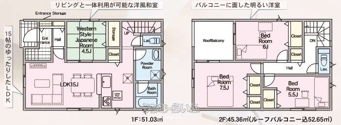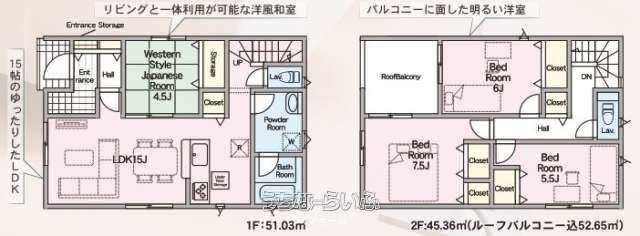 | 間取り | 4LDK ( 洋7.5 洋6 洋5.5 和4.5 LDK15) | ||