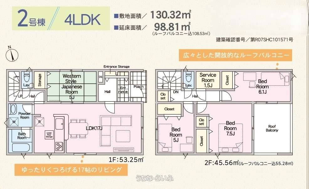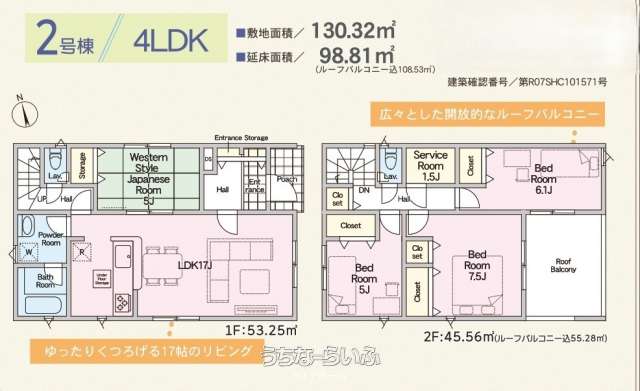 | 間取り | 4LDK ( 洋7.5 洋6.1 洋5 和5 LDK17 ※ルーフバルコニー) | ||
