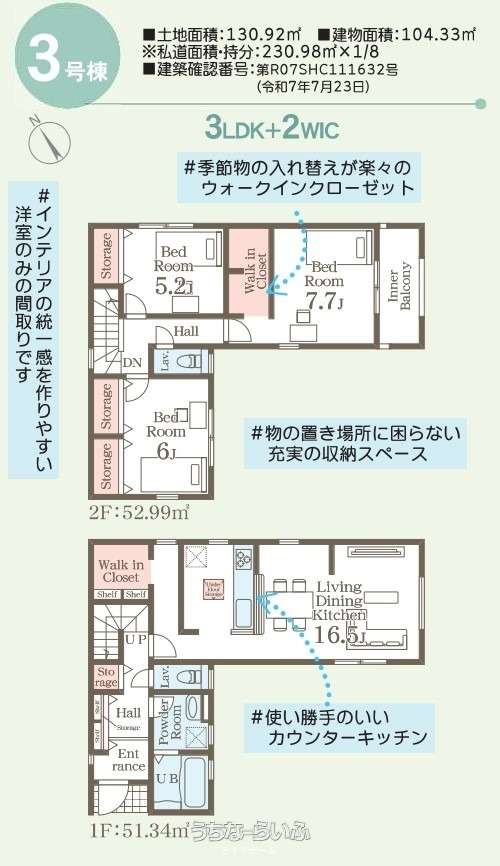 | 建物面積 | 104.33m² / 31.55坪 | 土地面積 | 130.92m² / 39.6坪 |